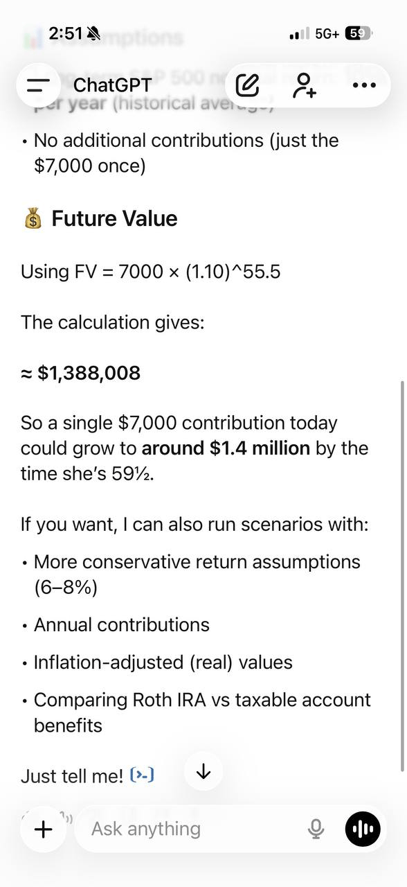 I even asked ChatGPT to calculate what happens if they never touch that money for 60 years — the numbers speak for themselves.